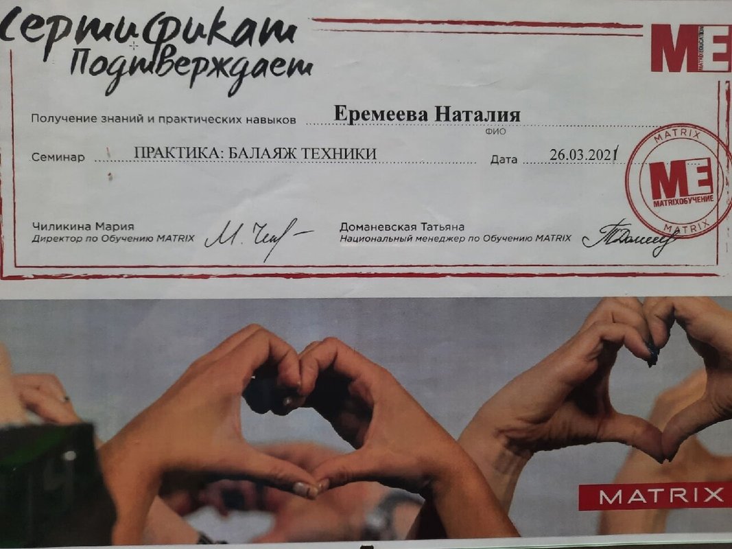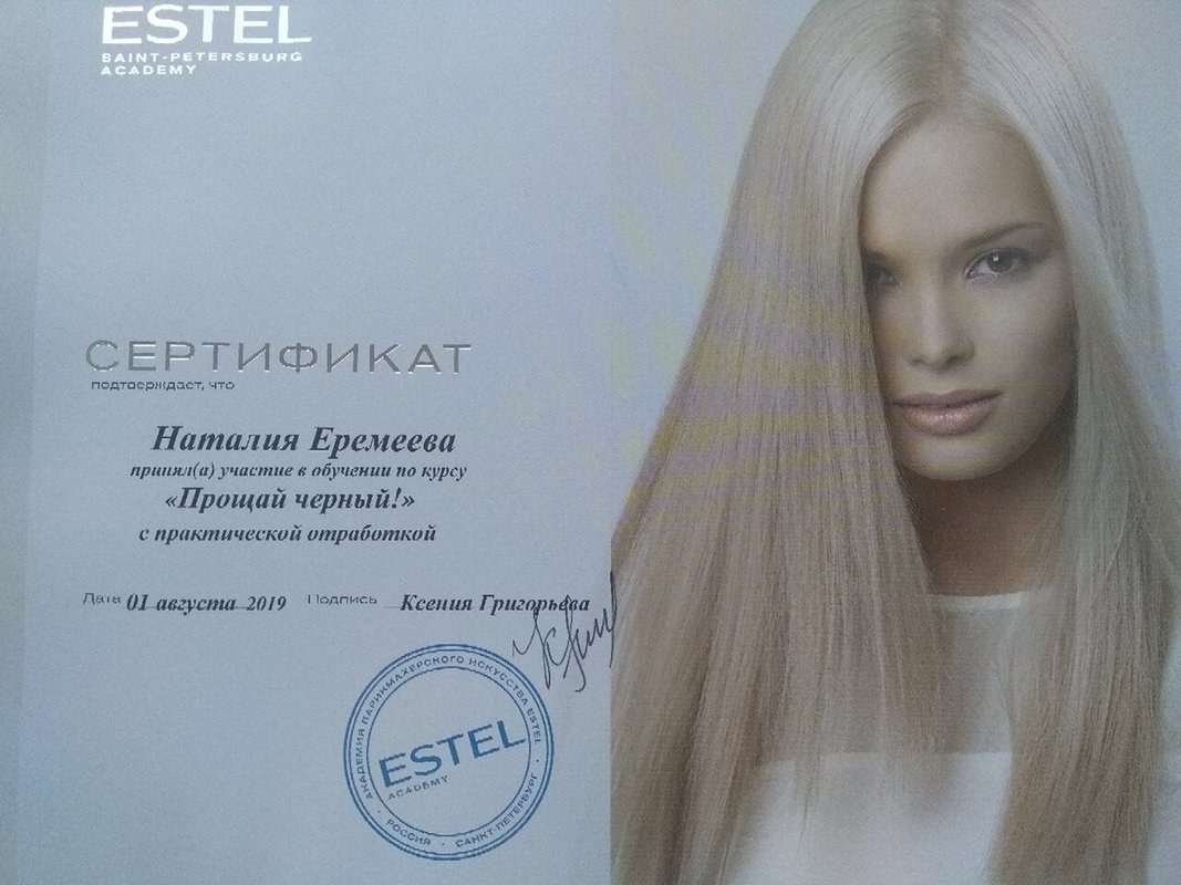 Наталья Еремеева нравится как мастер, своим общением, могу ее порекомендовать другим людям за открытость и лояльность к клиентам, за профессионализм. Недавно воспользовалась у нее окрашиванием волос в русый цвет.