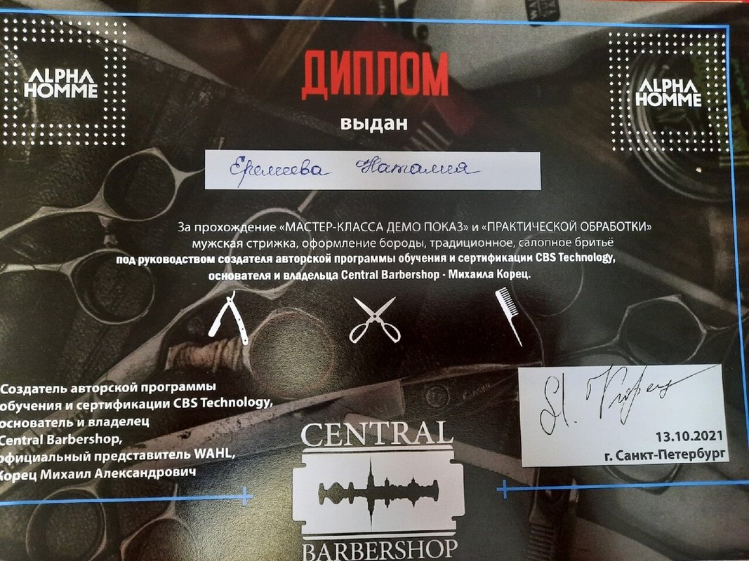 Мастер Наталия - специалист высшей категории. Быстро, качественно, лояльные цены, а главное ориентир на клиента: подобрала удобное для меня время на стрижку. Рекомендую всем. И локация удобная: и парковка и общественным транспортом можно добраться